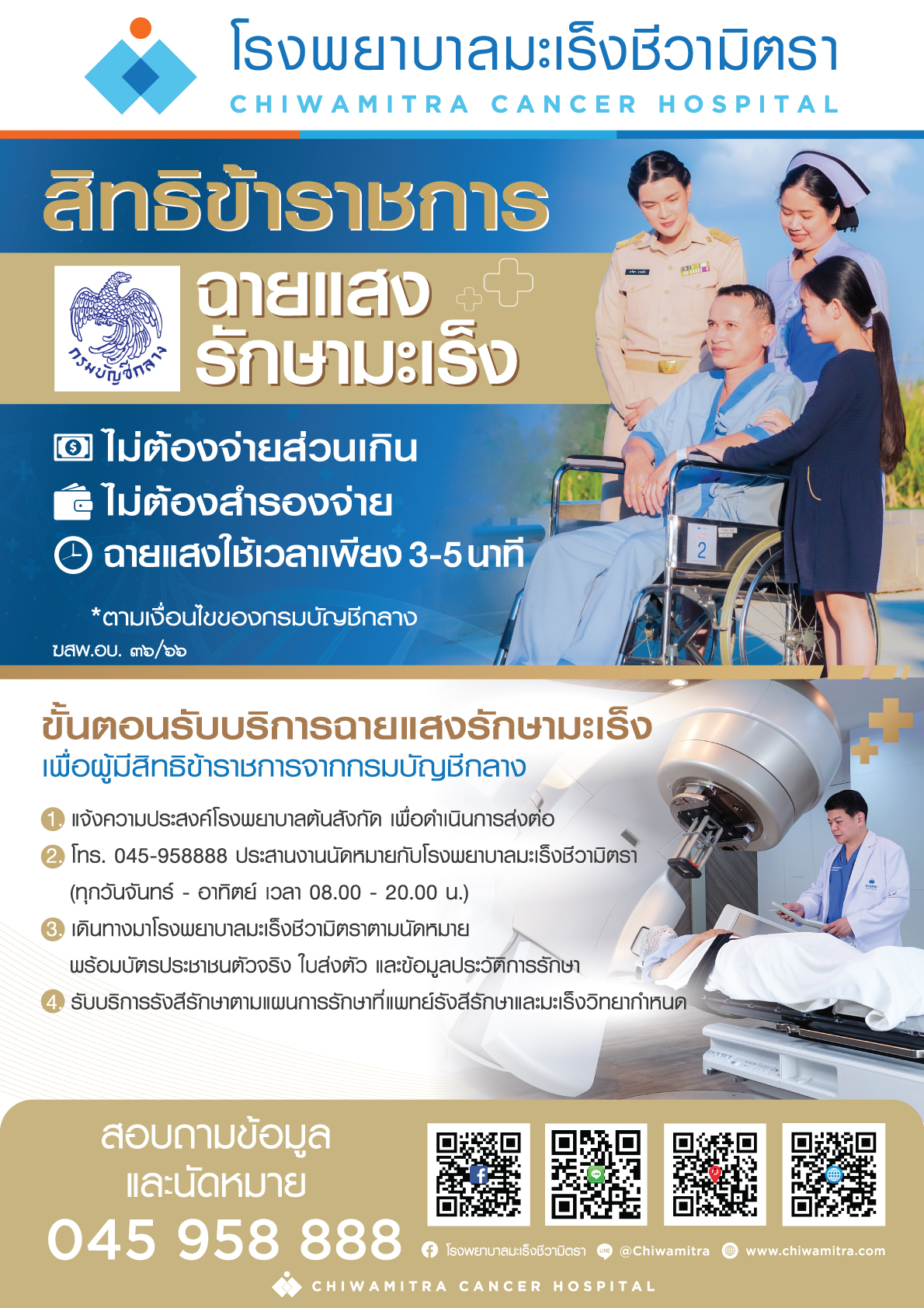 จุดเด่นของโรงพยาบาลมะเร็งชีวามิตราโรงพยาบาลมะเร็งชีวามิตรา เป็นโรงพยาบาลเฉพาะทางด้านมะเร็งที่มุ่งเน้นผู้ป่วยเป็นศูนย์กลาง ด้วยเทคโนโลยีทันสมัย บริการครบวงจร แพทย์ผู้เชี่ยวชาญ และสถานที่สะดวกสบาย ให้ผู้ป่วยมั่นใจในการรักษาและได้รับการดูแลอย่างดีที่สุด