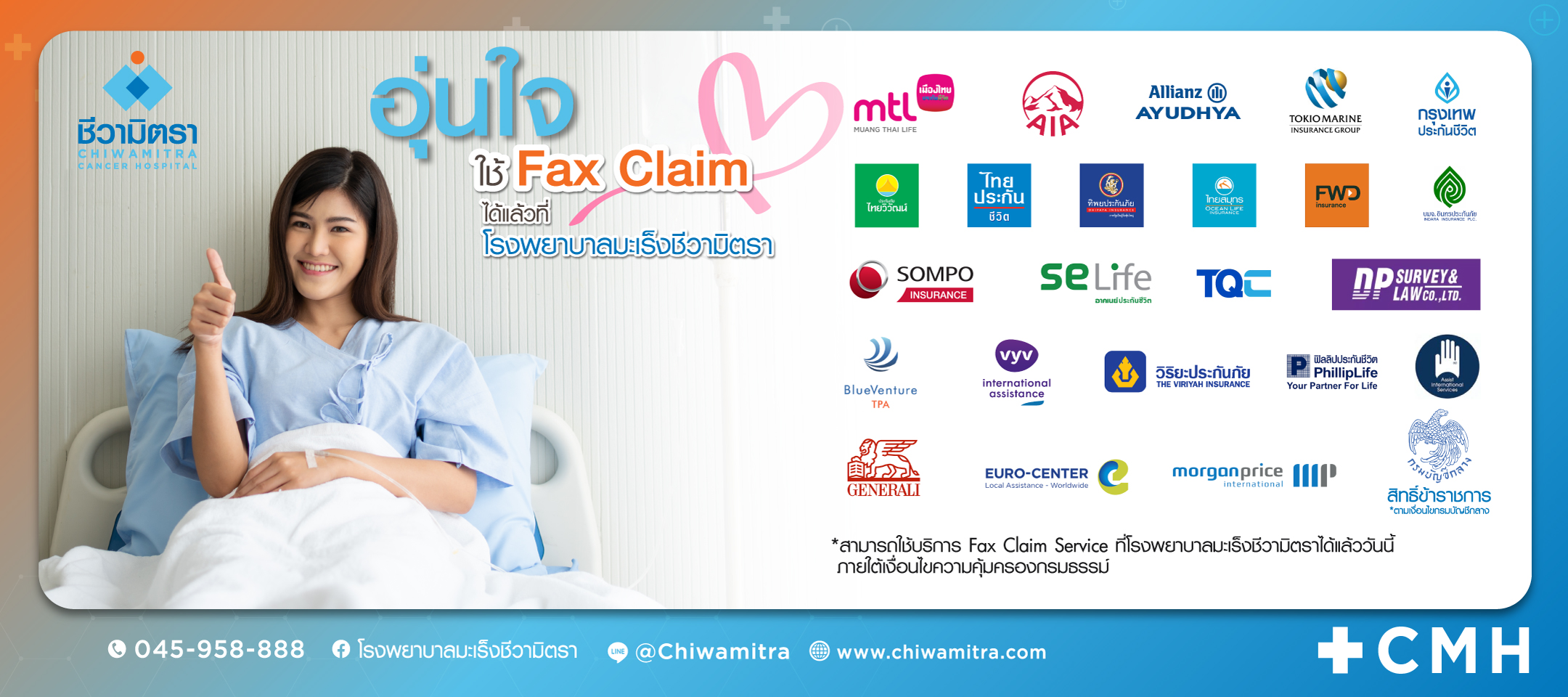 โรงพยาบาลมะเร็งชีวามิตรา อุบลราชธานี มุ่งมั่นที่จะให้บริการรักษาผู้ป่วยโรคมะเร็งด้วยมาตรฐานระดับสากล ด้วยความมุ่งมั่นที่จะให้ผู้ป่วยได้รับการรักษาที่ดีที่สุด และมีคุณภาพชีวิตที่ดีขึ้น +CMH